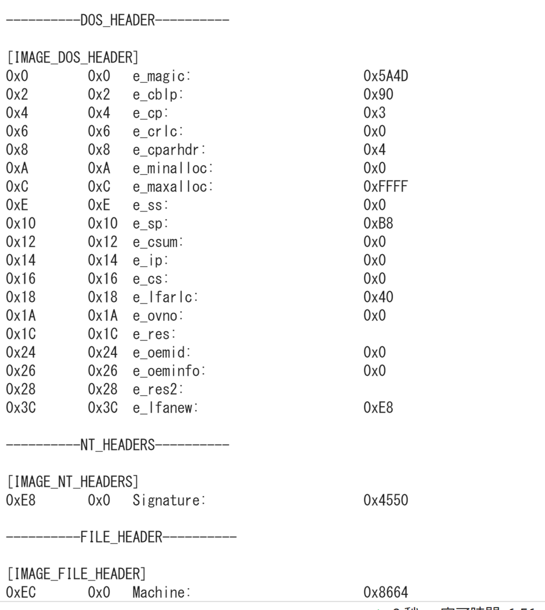 Windowsの計算機アプリ=calc.exeを読み込み、PE情報を出力する。